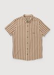 Com padronagem listrada vertical, traz um visual marcante na medida certa. A modelagem reta garante conforto e caimento natural, enquanto o fechamento frontal por botões e o bolso no peito reforçam o acabamento tradicional.